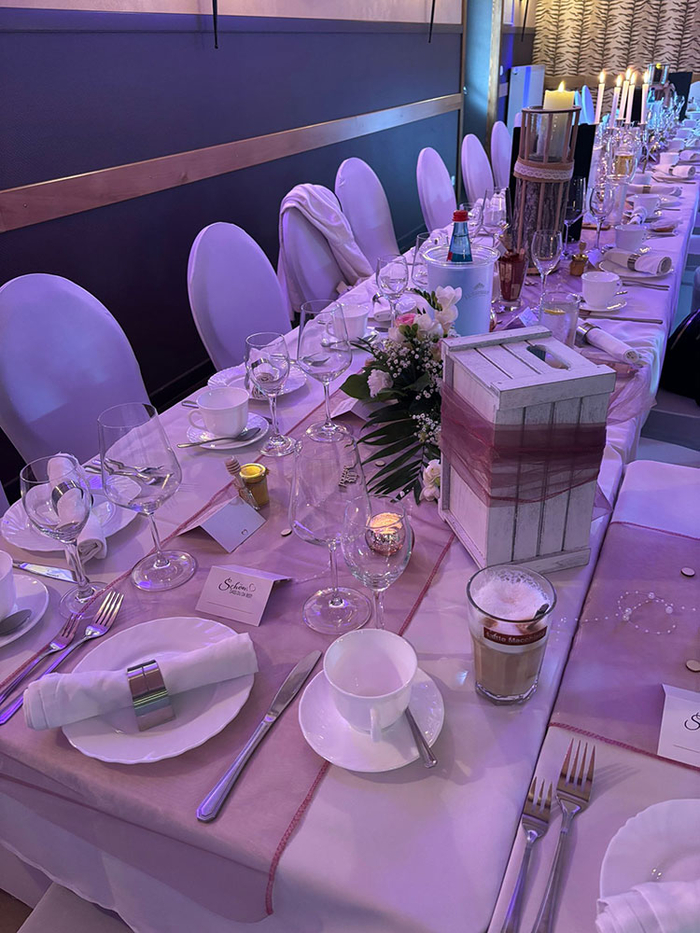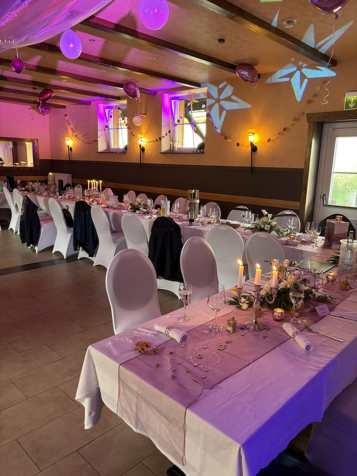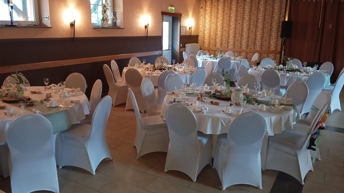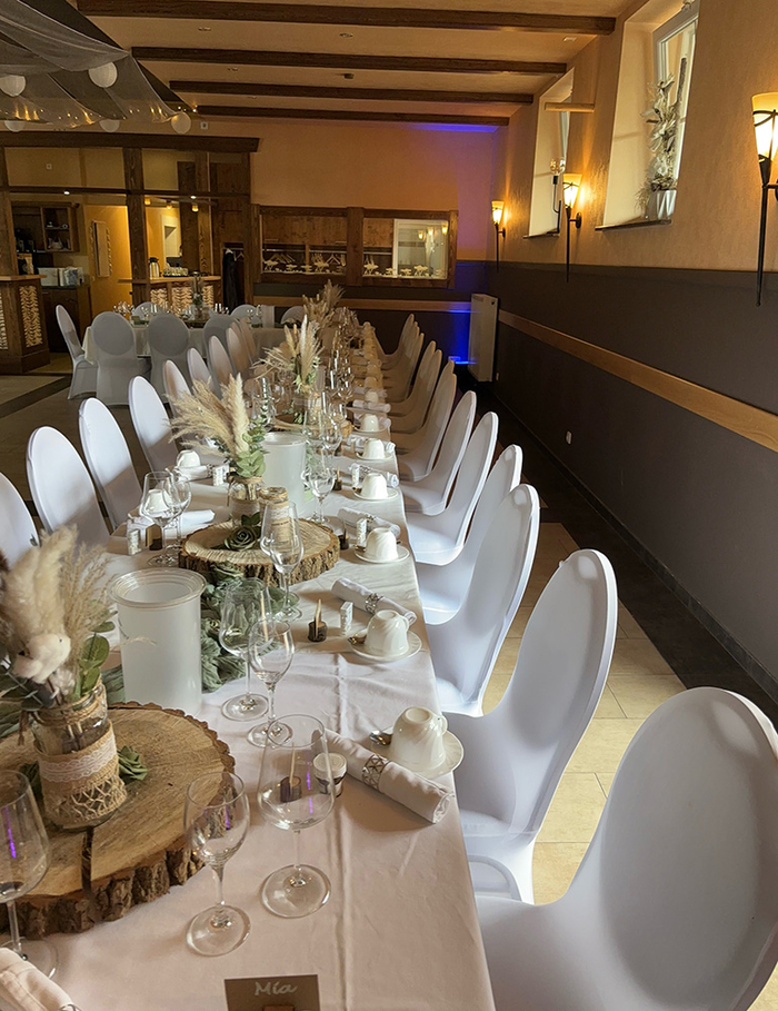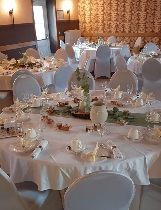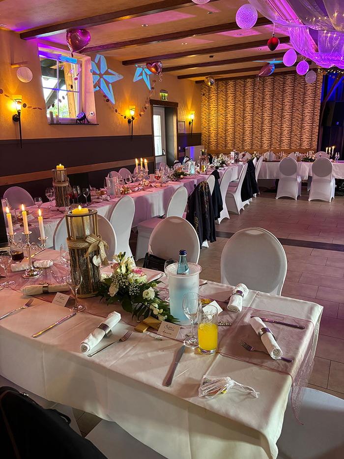 Für Ihre besonderen Anlässe steht Ihnen unser großer Saal mit Platz für bis zu 130 Gäste zur Verfügung. Ob Hochzeiten, Jubiläen, Firmenveranstaltungen oder andere große Feierlichkeiten – hier finden Sie den idealen Rahmen für unvergessliche Momente.